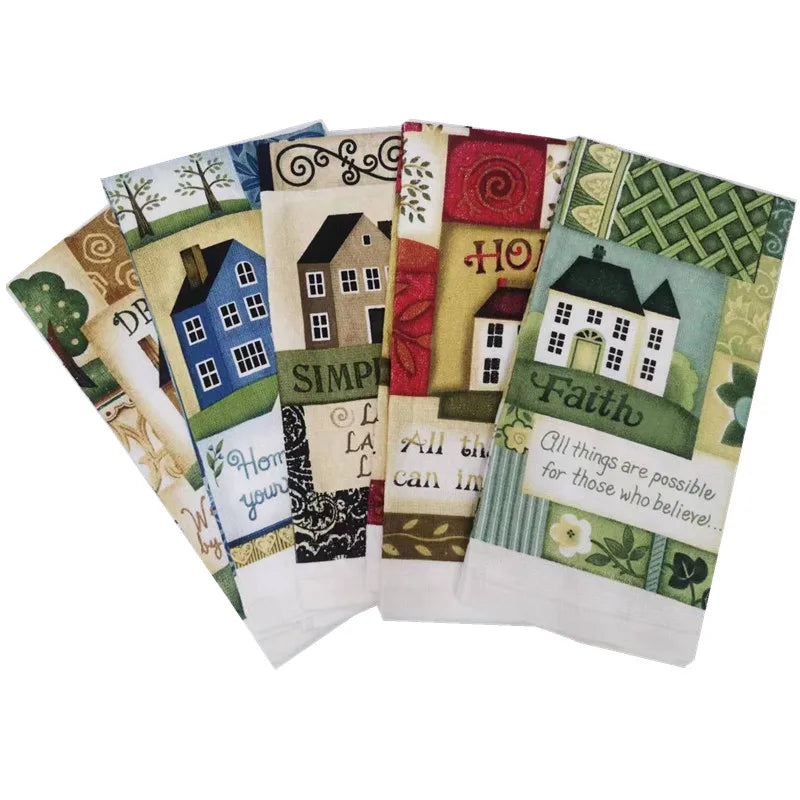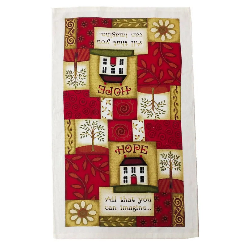 This vintage printed cotton tea towel with motivational quotes is a must-have for any kitchen. Its charming colourful house design adds a touch of and personality and coziness to your space.